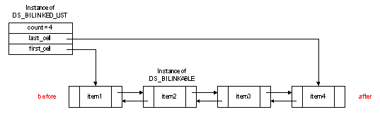 The inefficiencies that we pointed out in the linked implementation of lists can be easily addressed just by using linkable cells which not only have a reference to their right neighbor but also keep a reference to their left neighbor. Class DS_BILINKED_LIST provides such an implementation since it uses DS_BILINKABLE cells.